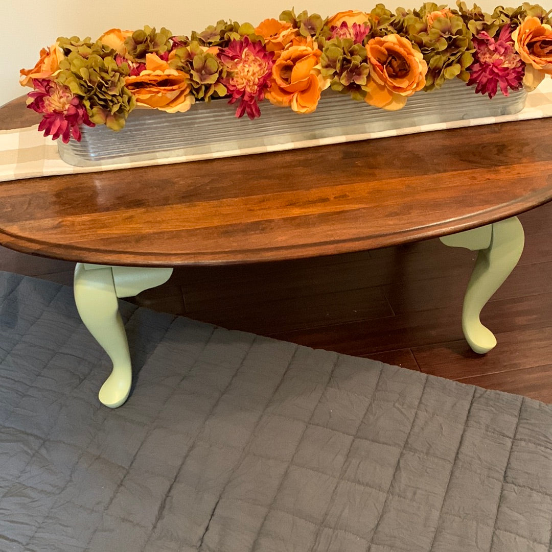 Oval Sage Coffee Table with Stained Top (46”L x 28”W x 17”H)